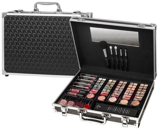 Velký kosmetický kufřík, který obsahuje dekorativní kosmetiku a další doplňky pro správné líčení. Kosmetika je testována dle norem EU. Kufřík obsahuje laky na nehty, oční stíny (různé odstíny) , tvářenky, štětce, kartáčky na řasy, rtěnky, zrcátko pro snadnější líčení, lesk na rty. V kovovém kufříku najdete také návod na správné líčení.