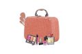 Kufřík s kosmetikou. Velikost 19cm. Obsahuje zrcátko, umělé nehty, lesk na rty, tvářenku, oční stíny, pilníky na nehty, sadu štětců, balzám na rty, oční linky, třpytivé dekorace.