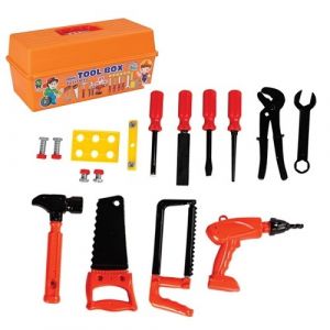 KUFŘÍK s nářadím pro malé kutily. Obsahuje 25 ks různého nářadí – pilka,šroubovák,vrtačka,maticový klíč,hasák a další.