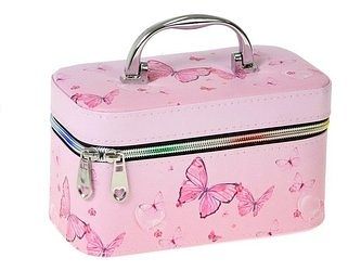 Kufřík se zipem a zrcátkem, velikost S, motiv:růžový motýlci, 19x12x11cm