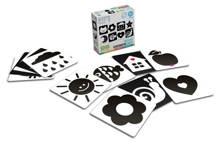 Véééliké kontrastní karty Pro miminka jsou první hrou, se kterou rodiče mohou už s tak malými dětmi začít pracovat. Hra má vliv na jejich rozvoj a je jedním z mnoha způsobů, jak podporovat jejich kognitivní a vizuální schopnosti v raném věku. Novorozenci mají omezenou schopnost vidět detaily a rozlišovat barvy. Kontrastní obrázky s výraznými černobílými barvami jsou snadno vnímány jejich očima a pomáhají rozvíjet jejich zrakové schopnosti. Kontrastní obrázky jsou pro miminka atraktivní a mohou je zaujmout. Pomáhají stimulovat jejich pozornost a podporují jejich zájem o okolní svět.