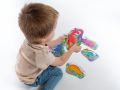 1. Při prvním skládání puzzle pomozte nejmenším dětem s výběrem dílků: každý motiv má na rubové straně jiný barevný odstín. To vám pomůže rychleji vytřídit správné dílky. Najděte nejdříve kartičky puzzle dvou a třídílných motivů. Před dítě položte různě pomíchané dílky již lícovou stranou jednoho, maximálně dvou motivů.