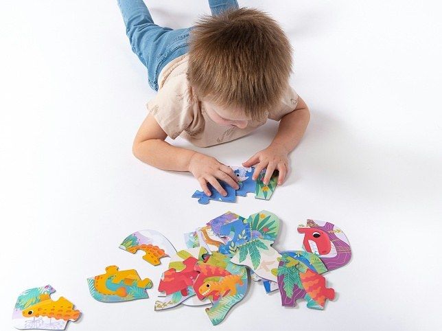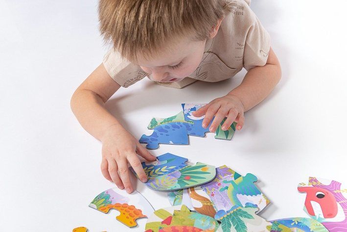 S roztomilým Véééliké puzzle Dinosauři mohou děti sestavovat a trénovat jemnou motoriku už od útlého věku. Puzzle jsou vytvořeny tak, že linie spojovacích částí mají takový tvar, aby šly spojit pouze správné obrázky, které patří k sobě. Puzzle zobrazují pět různých dinosaurů. Složené puzzle mají zjednodušený tvar konkrétních dinosaurů.