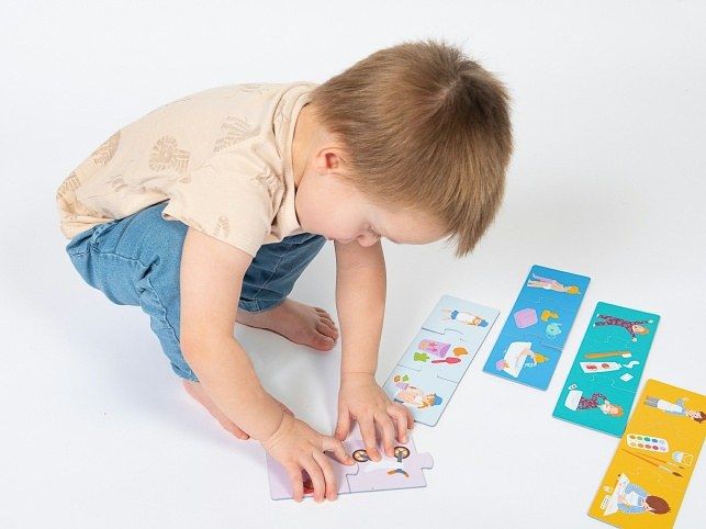 6. Obkreslete na papír tvar podle jednotlivých dílků puzzle a zkuste s dětmi do nich nakreslit svoje hračky.
