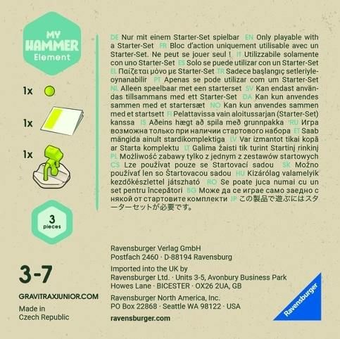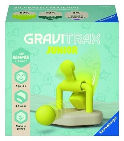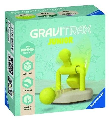 GraviTrax Junior je interaktivní systém kuličkové dráhy pro děti od 3 let. Ti nejmenší si staví své vlastní světy z kuličkových drah, které lze podle libosti zdobit a vytvářet tak jednotlivé tematické světy. Děti si tak při kreativním stavění užijí mnoho zábavy. Chlapci a dívky si mohou stavět své vlastní světy z kuličkových drah, které lze dle libosti zdobit a vytvářet tak jednotlivé tematické světy. Stejně jako všechny ostatní součásti systému interaktivní kuličkové dráhy je doplněk Kladivo vyroben z dřevěného bioplastu. Kladivo přináší na dráhu ještě větší dynamiku, takže lze postavit ještě napínavější průběh dráhy – pro nikdy nekončící zábavu.