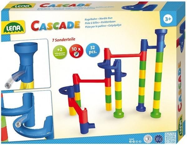 Kuličková dráha umožňuje sledovat cestu kuličky a její rychlost z horní části až dolů. Která kulička bude rychlejší a které sestavení dráhy bude zajímavější? Barevná kuličková dráha obsahuje spoustu překážek, které zvyšují napětí, zda kulička správně proběhne celou stavebnicí. Sestavit dráhu může dítě mnoha způsoby, dle vlastní fantazie. Stavebnice slouží k procvičení jemné motoriky a donutí dítě přemýšlet. Balení obsahuje 34 ks + 10 kuliček, v krabici.
