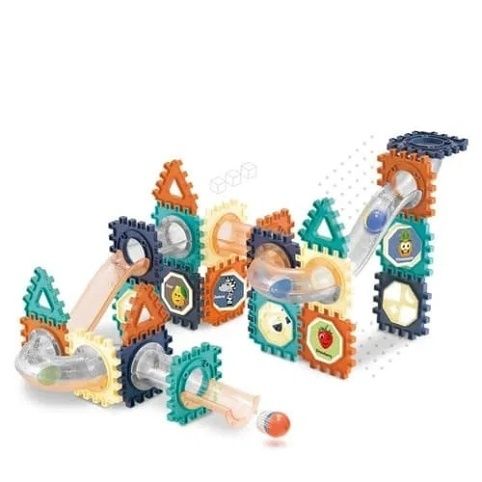 "Sestav si svoji kuličkovou dráhu. Výrobek rozvíjí představivost. Díky této stavebnici můžeš stavět různé scény, trojrozměrné scény, hrát hry (domino, která kulička bude první v cíli?), stavět cokoliv tě napadne. Objevte svět zábavy s touto rozsáhlou kuličkodráhou, která obsahuje 66 ks různých dílků! Tato kreativní stavebnice nabízí neomezené možnosti pro stavění kuličkových dráh, trojrozměrných scén a dalších fantastických struktur. Děti si mohou vytvářet vlastní závodní dráhy, experimentovat s