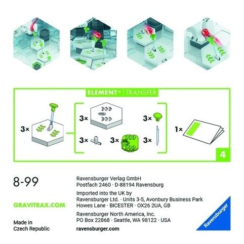Transfer převede kuličku na druhou stranu propasti. Dokážeš ho ve své dráze vhodně zapojit? Set obsahuje dílky k sestavení 3 plošinek. Proměňte tak vaši dráhu ve skutečně velkolepou konstrukci.