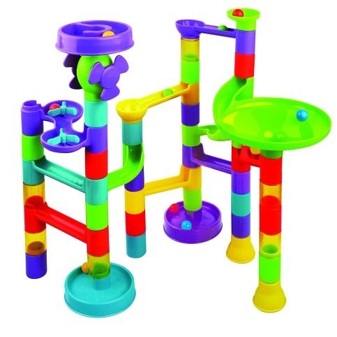 Kuličková dráha umožňuje sledovat cestu kuličky a její rychlost z horní části až dolů. Která kulička bude rychlejší a které sestavení dráhy bude zajímavější? Barevná kuličková dráha obsahuje spoustu překážek, které zvyšují napětí, zda kulička správně proběhne celou stavebnicí. Sestavit dráhu může dítě mnoha způsoby, dle vlastní fantazie. Stavebnice slouží k procvičení jemné motoriky a donutí dítě přemýšlet. Balení obsahuje 55 ks z toho 10 kuliček.