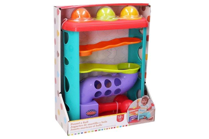 Kuličková dráha zatloukací. Velikost 32cm. Obsahuje dráhu, 3 kuličky a kladívko.