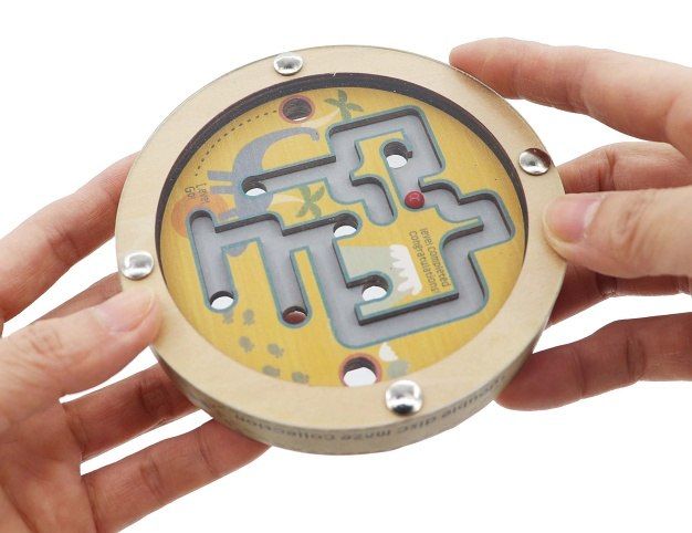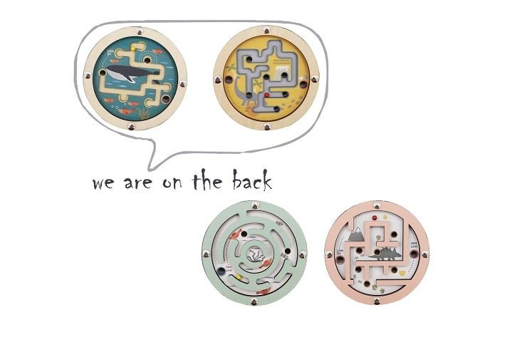 Kuličková hra oboustranná dřevěná. Rozměry 11x11x2 cm. 8 ks display box. 2 varianty - moře, dinosauři.
