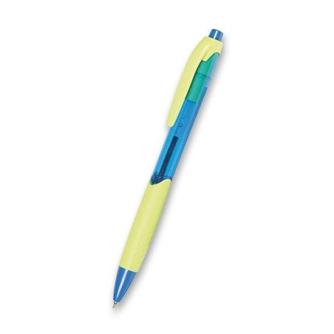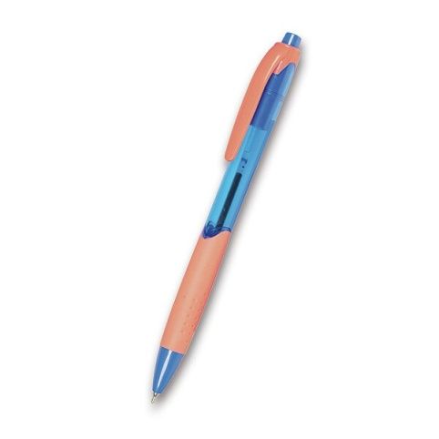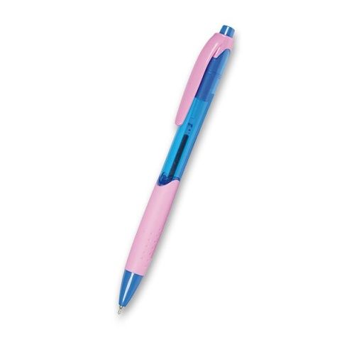 Kuličková tužka se stiskacím mechanismem. Inkoust má sníženou viskozitu, kuličková tužka při psaní po papíru klouže jako gelová kuličková tužka.dvojbarevné plastové tělo s pogumovaným úchopemmodrá náplňnáhradní náplňšíře stopy 0,7 mm