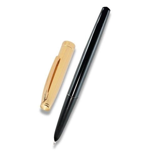 Klasická kuličková tužka "Čína". Jednobarevné plastové tělo, víčko z nerez oceli. Velkoobsahová náplň, modrá.Šíře stopy 0,5 mm.