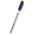 Jednorázová kuličková tužka s průhledným plastovým tělem, ventilační víčko s klipem v barvě náplně. Ergonomická oblast úchopu. Šířka stopy 0,5 mm.
