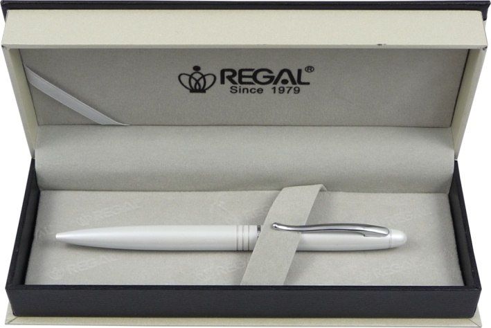 Kuličkové pero s otočným mechanismem, vyměnitelnou náplní uložené v dárkové krabičce, lesklé kovové tělo, náplň modrá + dárková taška Regal