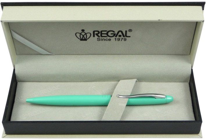 Kuličkové pero s otočným mechanismem, vyměnitelnou náplní uložené v dárkové krabičce, lesklé kovové tělo, náplň modrá + dárková taška Regal