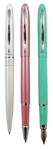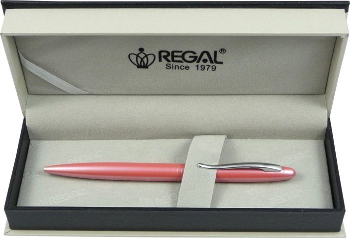 Kuličkové pero s otočným mechanismem, vyměnitelnou náplní uložené v dárkové krabičce, lesklé kovové tělo, náplň modrá + dárková taška Regal
