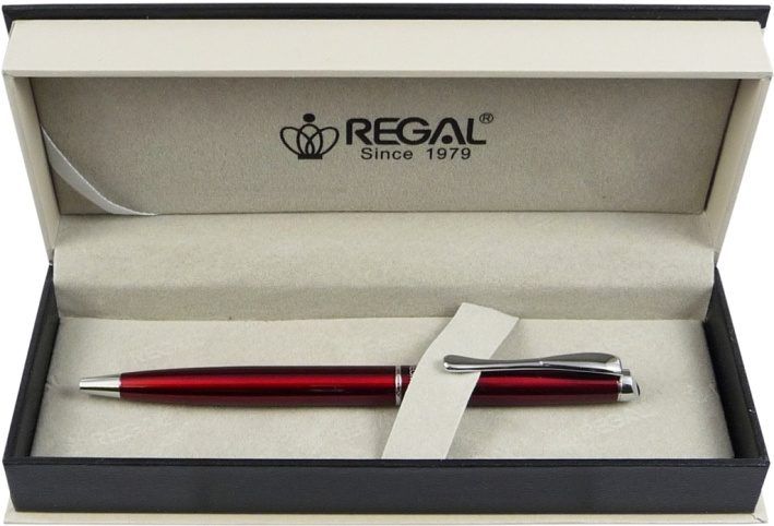 Kuličkové pero s otočným mechanismem, vyměnitelnou náplní uložené v dárkové krabičce, lesklé kovové tělo, náplň modrá + dárková taška Regal