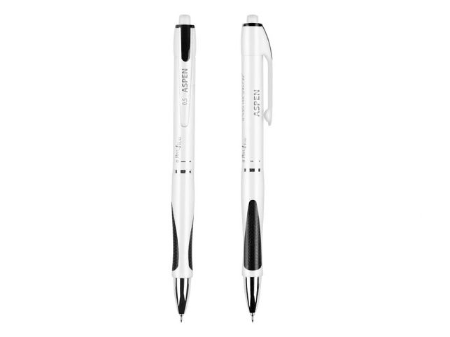 Kvalitní plastové kuličkové pero s vyměnitelnou náplní ASPEN. Toto kuličkové pero je ergonomicky tvarované a příjemně sedí v ruce. Pogumovaný úchop propisky zabraňuje klouzání pera v ruce. Provedení: stiskací mechanismus Počet kusů v balení: 50ks Barva: černá Náplň: 5400171, 5400165, 5400166, 5400184, 5400185 Délka: 145mm Uvedená cena je za 1 ks. Všech 50 ks je balených v papírové krabičce.