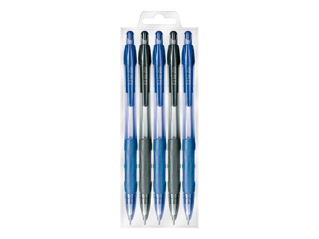 Plastové kuličkové pero BE SLIM Provedení: stiskací mechanismus Počet kusů v balení: 5 Barva: modrá, černá Délka: 141mm Náplň: 5400171, 5400165, 5400166, 5400184, 5400185 Uvedená cena je za 1 balení.