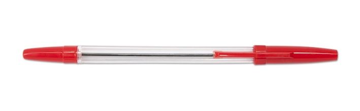 Jednorázové plastové kuličkové pero s průhledným tělem pro kontrolu množství náplně. Hrot 1,00 mm.