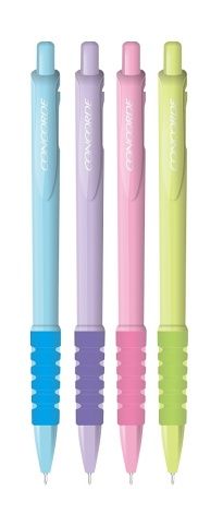 Plastové kuličkové pero v pastelových barvách. Gumový úchop, cvakací mechanismus. Dodáváme v mixu barev. Na každém kuse EAN. Šíře hrotu 0,7mm. Náhradní náplň A3 modrá.
