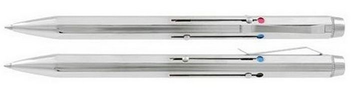 Tradiční čtyřbarevné kovové pero ve stříbrné barvě. Náplň Mini (RD1) - modrá, červená, černá, zelená náplň. Šíře hrotu 0,8 mm.