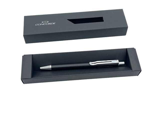 Kovové kuličkové pero se stiskacím mechanismem v černém provedení. Toto pero disponuje kovovým klipem a protiskluzovým úchopem. Šíře hrotu 1,0mm. Dodáváno v papírové černé krabičce. Náhradní náplň A3.