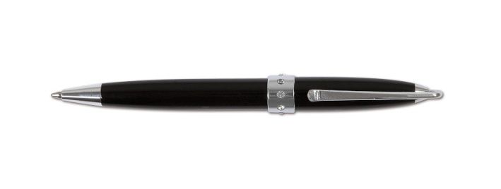 Luxusní dámské pero s otočným mechanismem pro snadné ovládání. Mosazné lakované tělo v černé barvě. Pochromované doplňky s 8 krystaly Swarovski na středním prstenu. Koženkové pouzdro v černé barvě. Visačka Concorde Swarovski pro potvrzení pravosti. Délka pera 11,5cm. Náplň vyměnitelná MINI-RD1. Šířka hrotu 0,8mm.