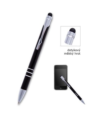 Kuličkové pero CONCORDE Soft dotykové - je vhodné i pro obsluhu mobilních telefonů a tabletů. Má celokovové tělo s pochromovanými doplňky. Ovládá se stiskacím mechanismem. Černé tělo bez etikety s EAN kodem. Vhodné pro reklamní potisk či gravír. Ozdobou jsou tři stříbrné prsteny ve spodní části kuličkového pera. Vyměnitelná náplň Silver (4441). Šíře hrotu 0,8 mm.