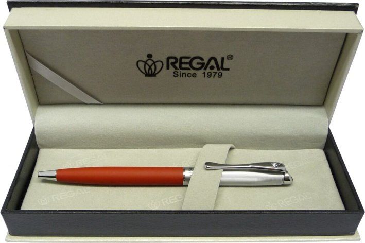 Kuličkové pero s otočným mechanismem, vyměnitelnou náplní uložené v dárkové krabičce, matné kovové tělo, náplň modrá + dárková taška Regal