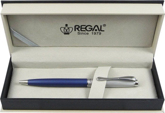 Kuličkové pero s otočným mechanismem, vyměnitelnou náplní uložené v dárkové krabičce, matné kovové tělo, náplň modrá + dárková taška Regal