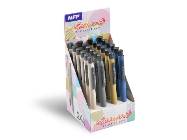 Skvěle vypadá, skvěle píše! Kuličkové pero Element nabízí to podstatné – čistý design, jemné moderní barvy a praktický stiskací mechanismus. Klip s kovovým vzhledem dodává peru elegantní detail, který zaujme na první pohled. Píše modře a hladce díky hrotu o tloušťce 0,7 mm. Ideální pro každodenní poznámky, seznamy i zápisky do diáře – do školy, do práce, na každý den. Hrot: 0,7 mm Náplň: 5400191 Počet kusů v balení: 24 ks Provedení: stiskací mechanismus Barva: modrá, šedá, hořčicová, béžová Uvedená cena je za 1 ks.