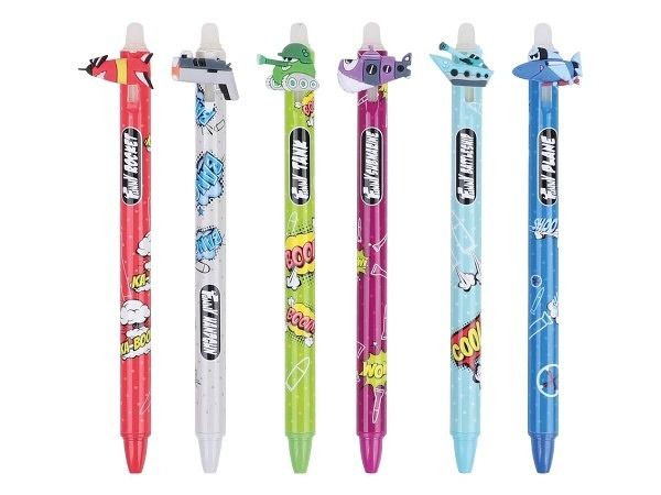 Gumovací gelové kuličkové pero obsahuje speciální inkoust tzv. vymaž a přepiš, nebo vymaž a nech znovu objevit. Pokud uděláte chybu, stačí jen otočit pero a plastovou špičkou text vymažete. Špička zahřeje inkoust, ten zmizí a lze je znovu přepsat. Můžete si psát i tajné vzkazy, po vygumování stačí jen papír ochladit pod bod mrazu a text se znovu objeví. Náplň: 0,5 mm, modrá.