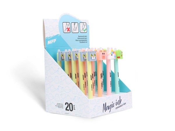 Gumovací gelové kuličkové pero obsahuje speciální inkoust tzv. vymaž a přepiš, nebo vymaž a nech znovu objevit. Pokud uděláte chybu, stačí jen otočit pero a plastovou špičkou text vymažete. Špička zahřeje inkoust, ten zmizí a lze je znovu přepsat. Můžete si psát i tajné vzkazy, po vygumování stačí jen papír ochladit pod bod mrazu a text se znovu objeví.
