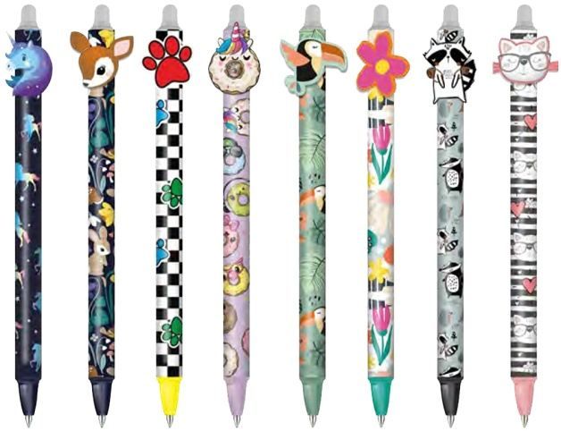 Praktické gumovací kuličkové pero pro školáky - psaní textu bez přepisování. Stačí vygumovat napsaný text a snadno napsat nový. Motivy v barevném mixu. Barva náplně: modrá. Šířka stopy: 0,5 mm. !!