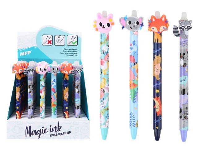 Gumovací kuličkové pero s motivy roztomilých zvířátek a jemným hrotem o tloušťce 0,5 mm nabízí možnost snadného mazání díky speciálnímu inkoustu, který lze vymazat pomocí integrované gumy na konci pera. Je ideální pro psaní poznámek, úkolů nebo zápisků do deníčků a plánovačů. Využití najde především ve škole či v kanceláři, kde oceníte možnost snadno opravit chyby bez potřeby korektoru. Přečtěte si, na jakém principu funguje gumovací pero Wizard! Hrot: 0,5 mm Počet kusů v balení: 36 ks Provedení: stiskací mechanismus Motiv: králíček, slon, liška, mýval Náplň: 5400196 gumovací modrá VAROVÁNÍ: Nevhodné pro děti do 3 let. Nebezpečí vdechnutí a spolknutí malých částic. Uvedená cena je za 1 ks.