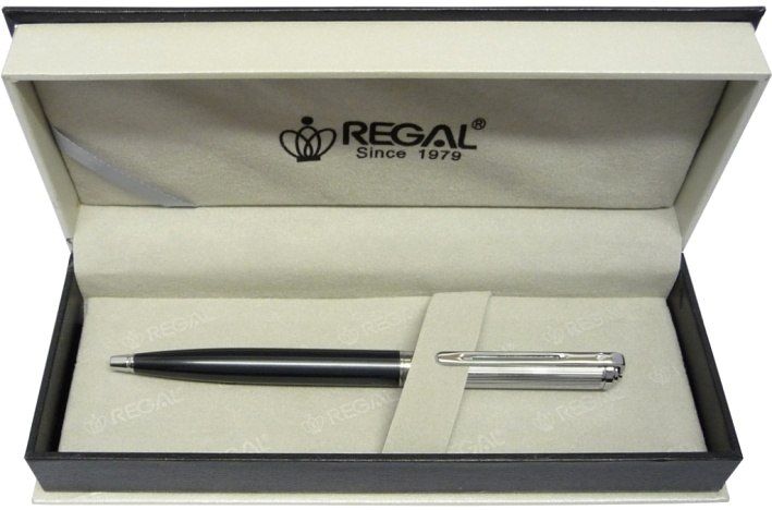 Kuličkové pero s otočným mechanismem, vyměnitelnou náplní uložené v dárkové krabičce, lesklé barevné kovové tělo se stříbrnými doplňky, náplň modrá + dárková taška Regal