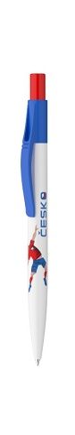 Mechanické kulickové pero ICO s potiskem v národních barvách s tématem fotbalu. Šíre stopy: 0,8 mm; délka stopy: 2500 m; barva náplne: modrá; vymenitelná nápln: X-20. Vyrobeno v Madarsku.