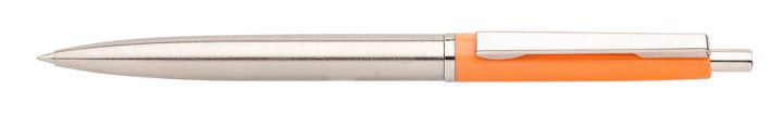 Kuličkové pero s kovovým tělem v úchopové části. Kovový klip. Vysoce kvalitní stiskací mechanismus. Hrot 0,8mm, kovová náplň Silver (4442) modrá.