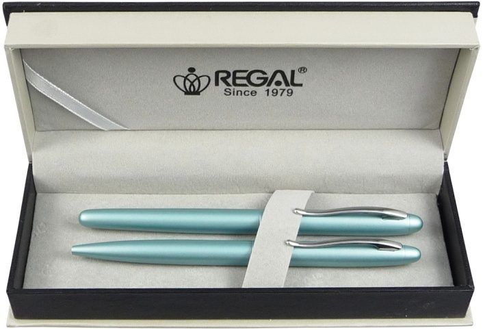 Kuličkové pero s otočným mechanismem, vyměnitelnou náplní + inkoustové pero s konvertorem uložené v dárkové krabičce, lesklé kovové tělo náplň modrá, konvertor lze vyměnit za bombičku (zásobník inkoustový) + dárková taška Regal