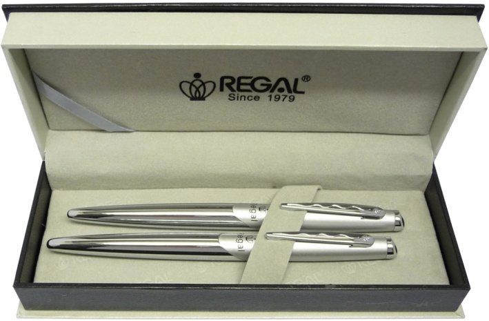 Kuličkové pero s vyměnitelnou náplní + inkoustové pero s konvertorem a iridiovým hrotem uložené v dárkové krabičce, stříbrné kovové tělo a barevné vičko se stříbrným klipem, náplň modrá konvertor lze vyměnit za bombičku (zásobník inkoustový) + dárková taška Regal
