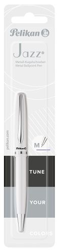 Kuličkové pero K36 Jazz Elegance, kovové, matně lakované, bílé tělo s kovovým klipem, náplň Pelikan 337 M modrá, na blistru