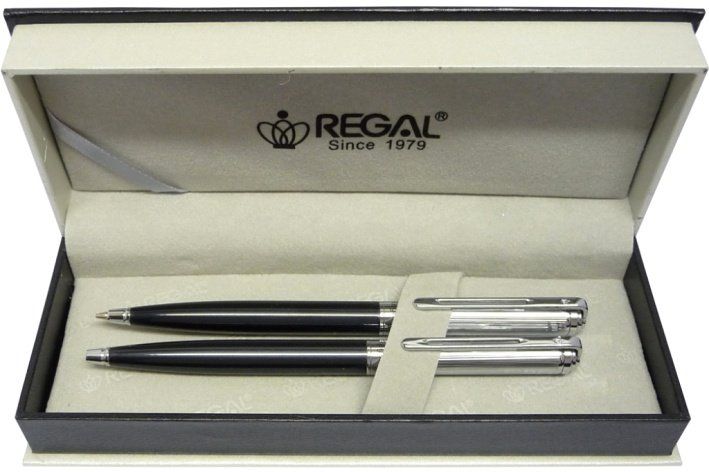 Kuličkové pero s otočným mechanismem, vyměnitelnou náplní + mikrotužka 0,5 mm uložené v dárkové krabičce, lesklé barevné kovové tělo se stříbrnými doplňky, náplň modrá + dárková taška Regal