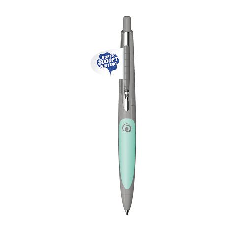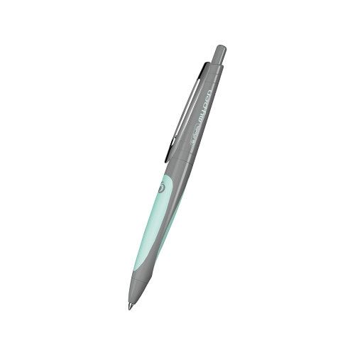 Kuličkové pero my.pen, plastové tělo s ergonomickým gumovým držením, kovový klip, modrá inkoustová náplň, vymazatelná zmizíkem, volně ložené, šedé / aqua