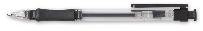 Průhledné tělo, úchopová část, klip a hrot pera je shodné s barvou náplně