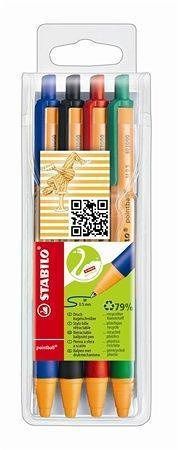 Kuličkové pero "Pointball", 4 různé barvy, 0,5mm, stiskací mechanismus, STABILO