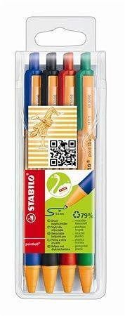 Kuličkové pero "Pointball", 4 různé barvy, 0,5mm, stiskací mechanismus, STABILO