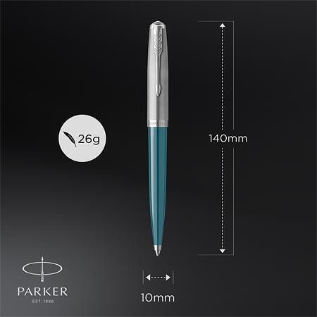 Kuličkové pero "Royal 51 Core", černá, 0,7 mm, tělo Teal Blue, stříbrný klip, PARKER 21235
