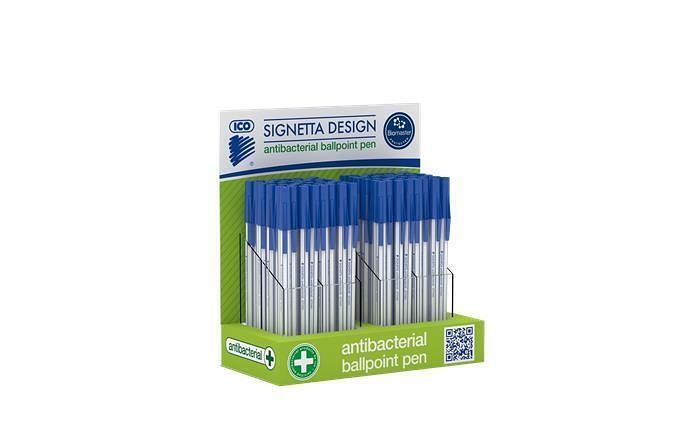 Vlastnosti: jednorázové kuličkové pero; uzavíratelné víčkem; antibakteriální účinky testované společností Industrial Microbiological Services Ltd. v Anglii; výdrž psaní až 2500 m;